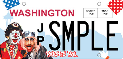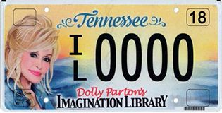Left to Right: Arizona's "Alice Cooper's Sold Rock Teen Centers" plate; Dolly Parton's Tennessee "Dollywood Foundation for Children" plate; Washington's "J.P. Patches Pal" plate.