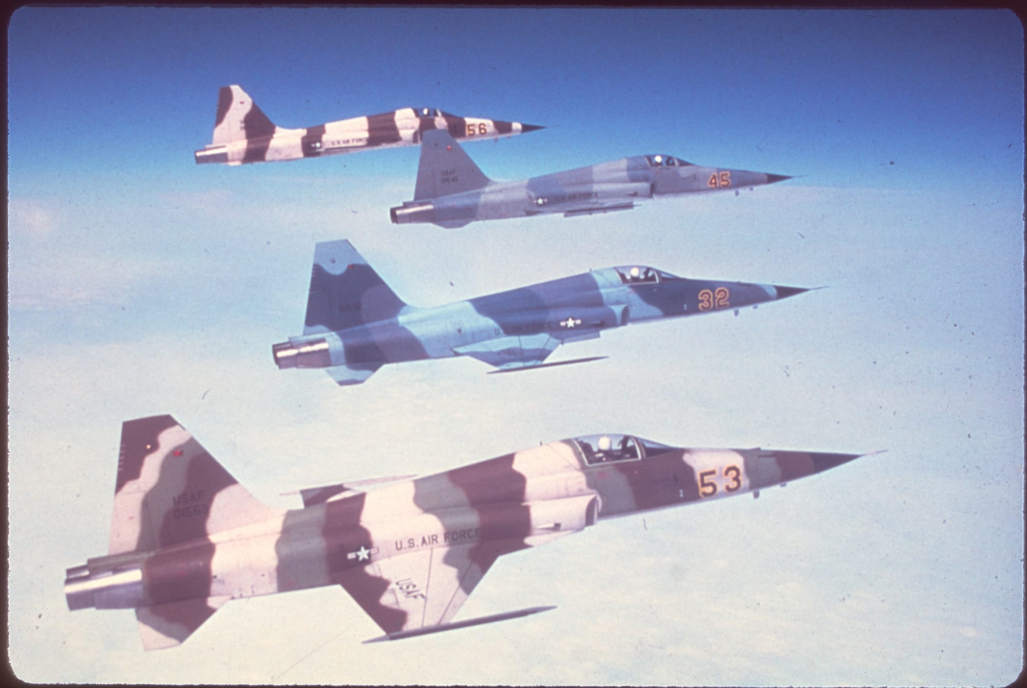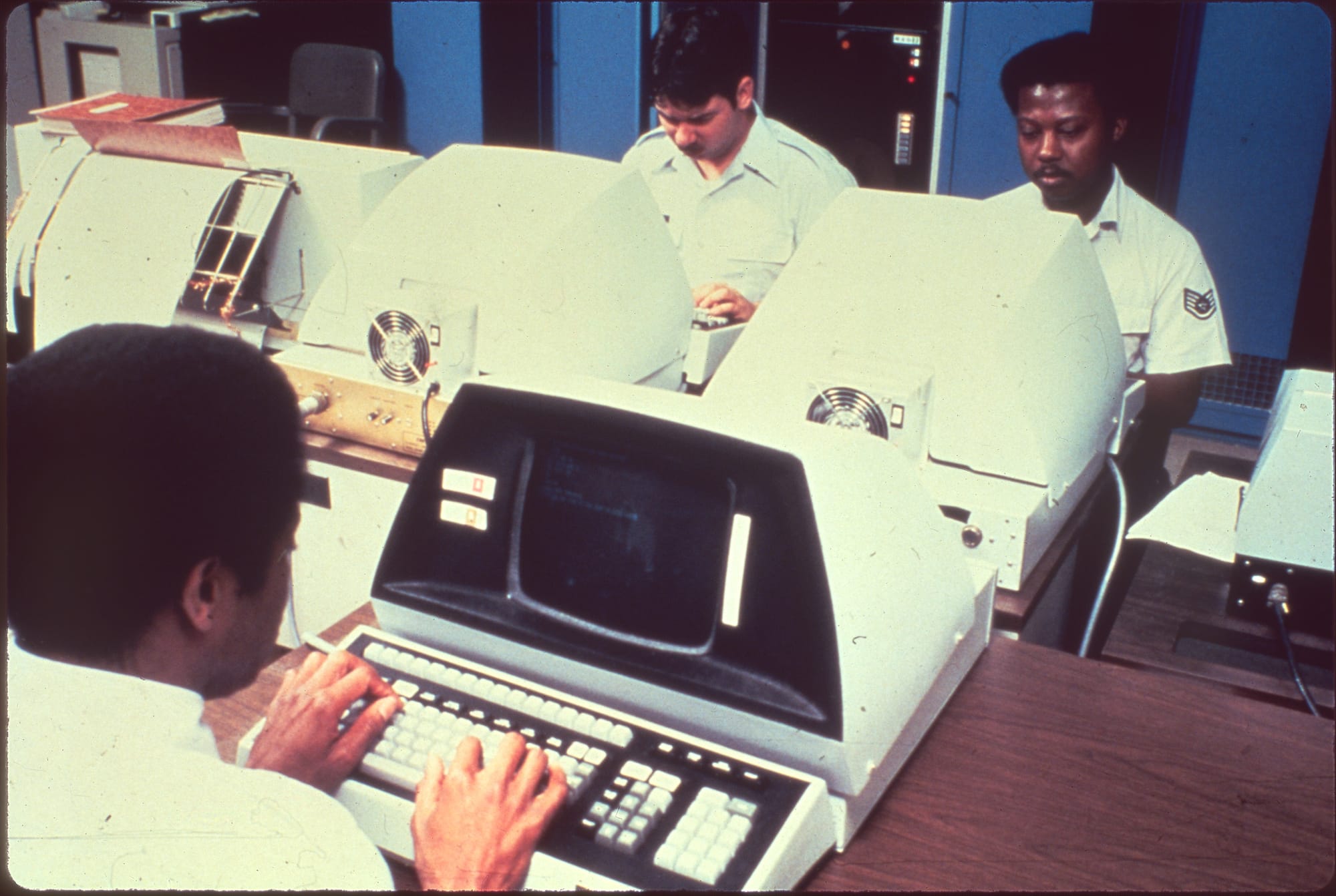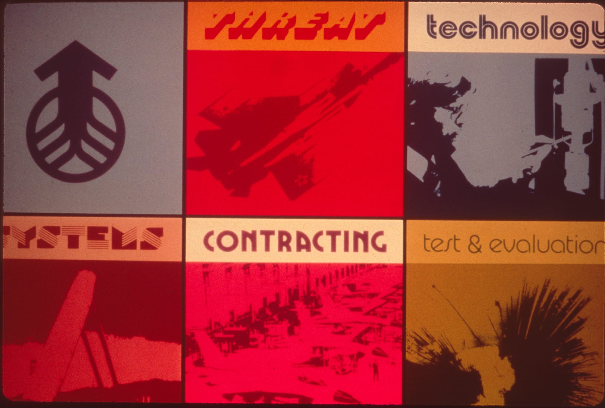 You will find a lot of all-caps no-nonsense san-serif fonts like Alternate Gothic and Futura in these slides, which feels very Air Force. There’s a few slides that go big with bold OCR display fonts, and even some physical letters that appear hand-placed.