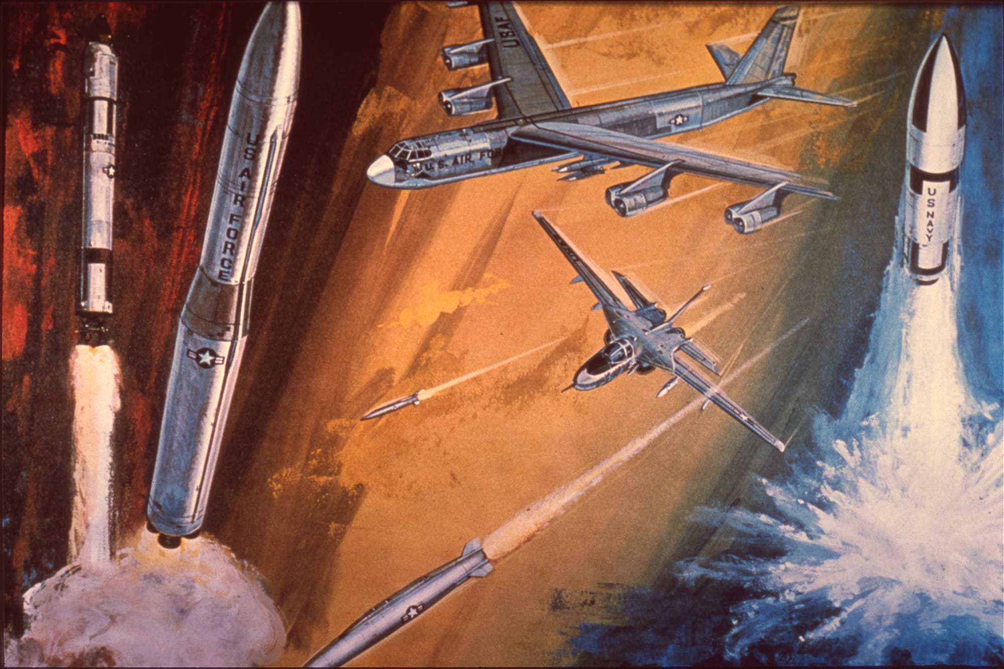 There are org charts, photos of command centers, illustrations of ominous submarines and strategic bombers, and many emblems for different Air Force commands. I sifted through all of these photos, which Biddle placed in the public domain, and are free to download at the Internet Archive.