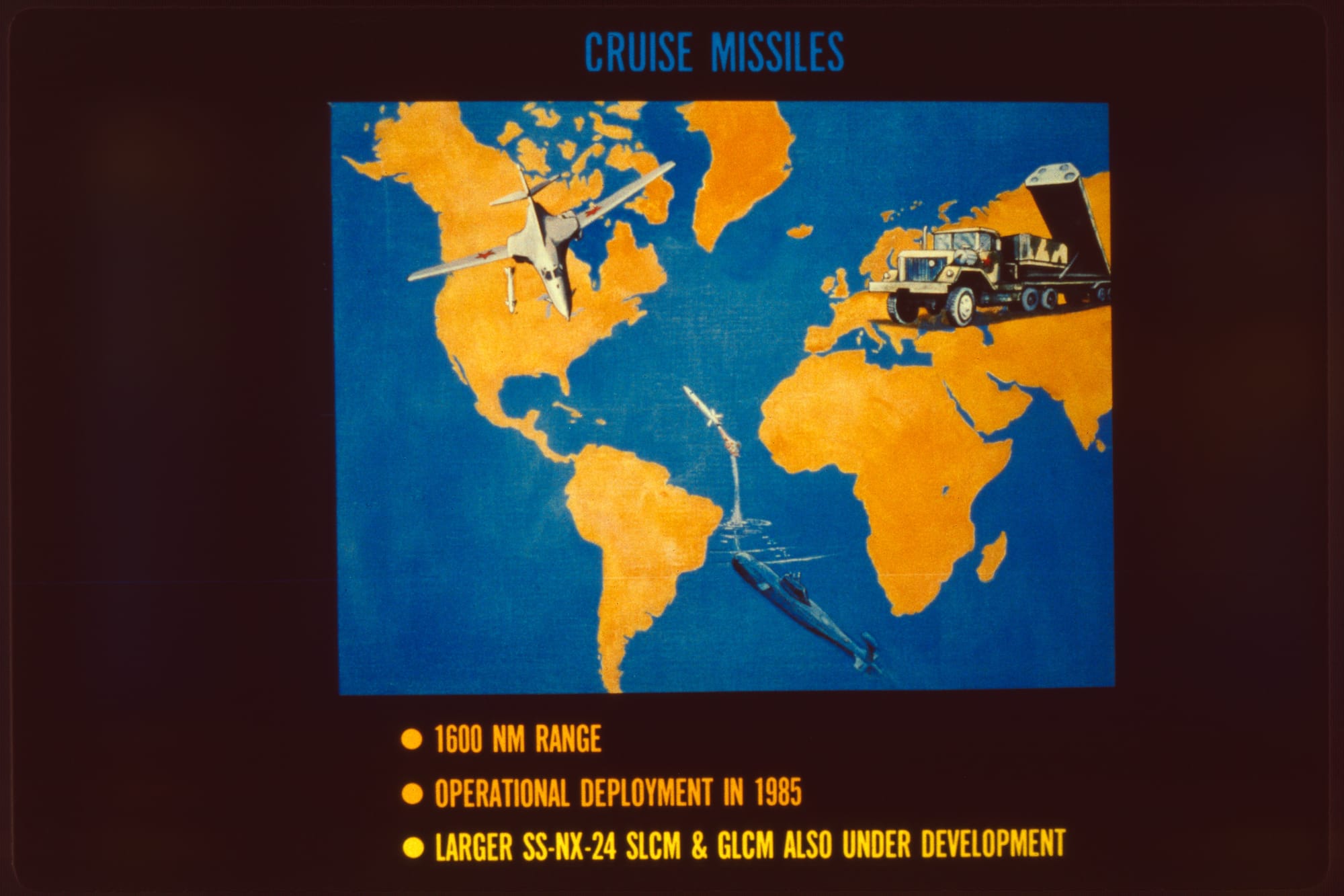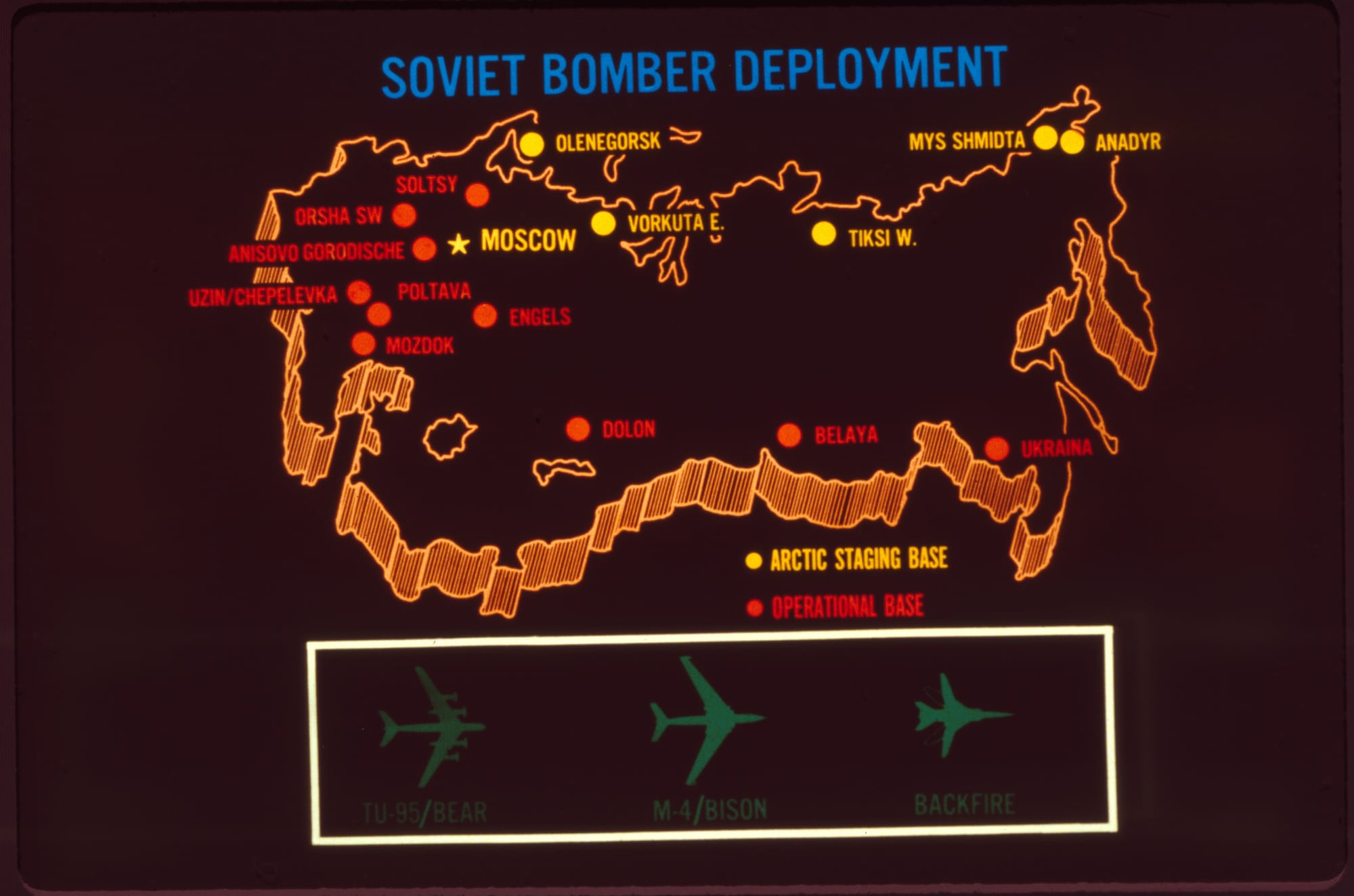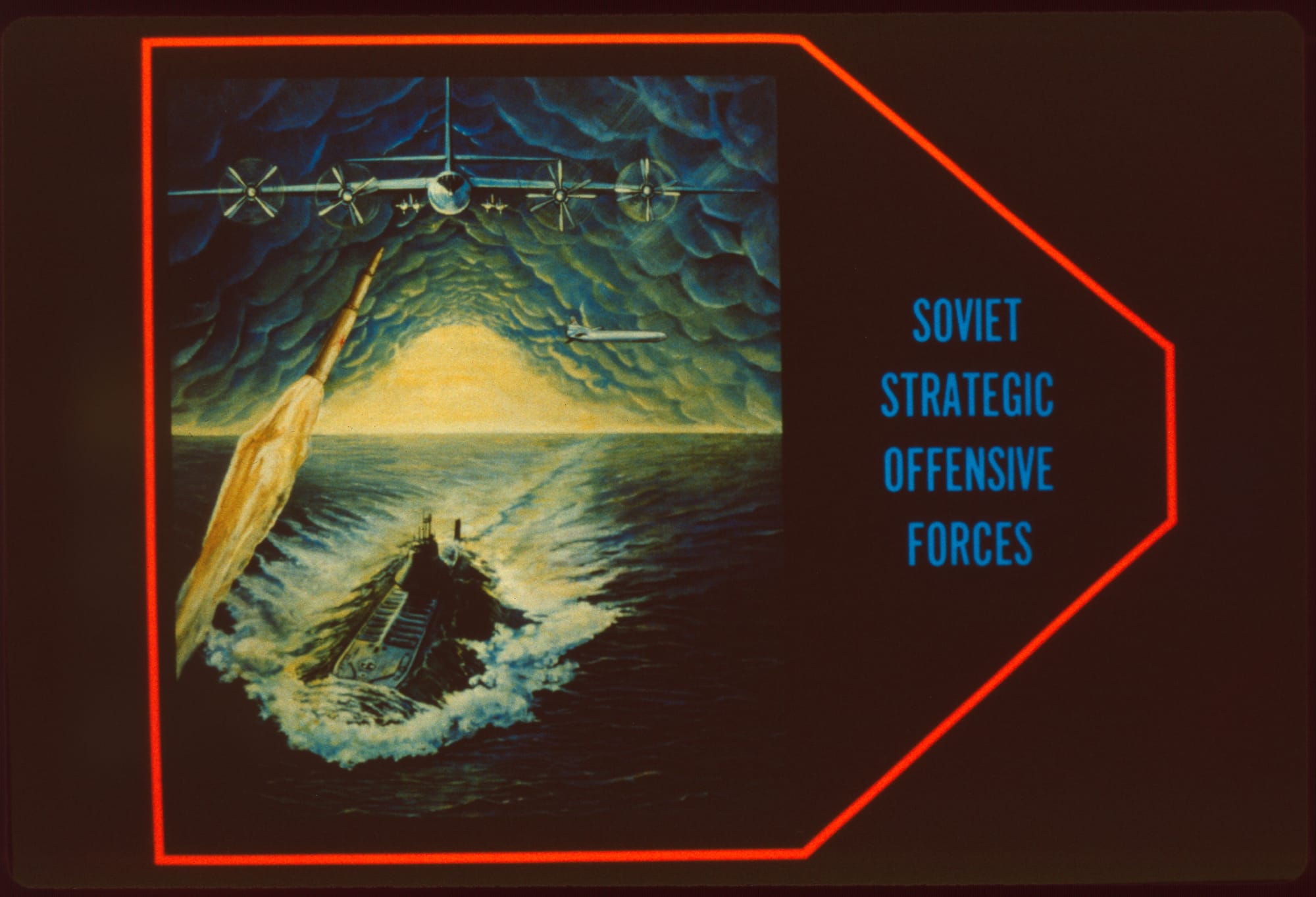 Most of the maps in these slides are illustrating the ways the US could have attacked the Soviet Union, or the ways they could have attacked us. Lotta “War Games“ vibes in these ones.