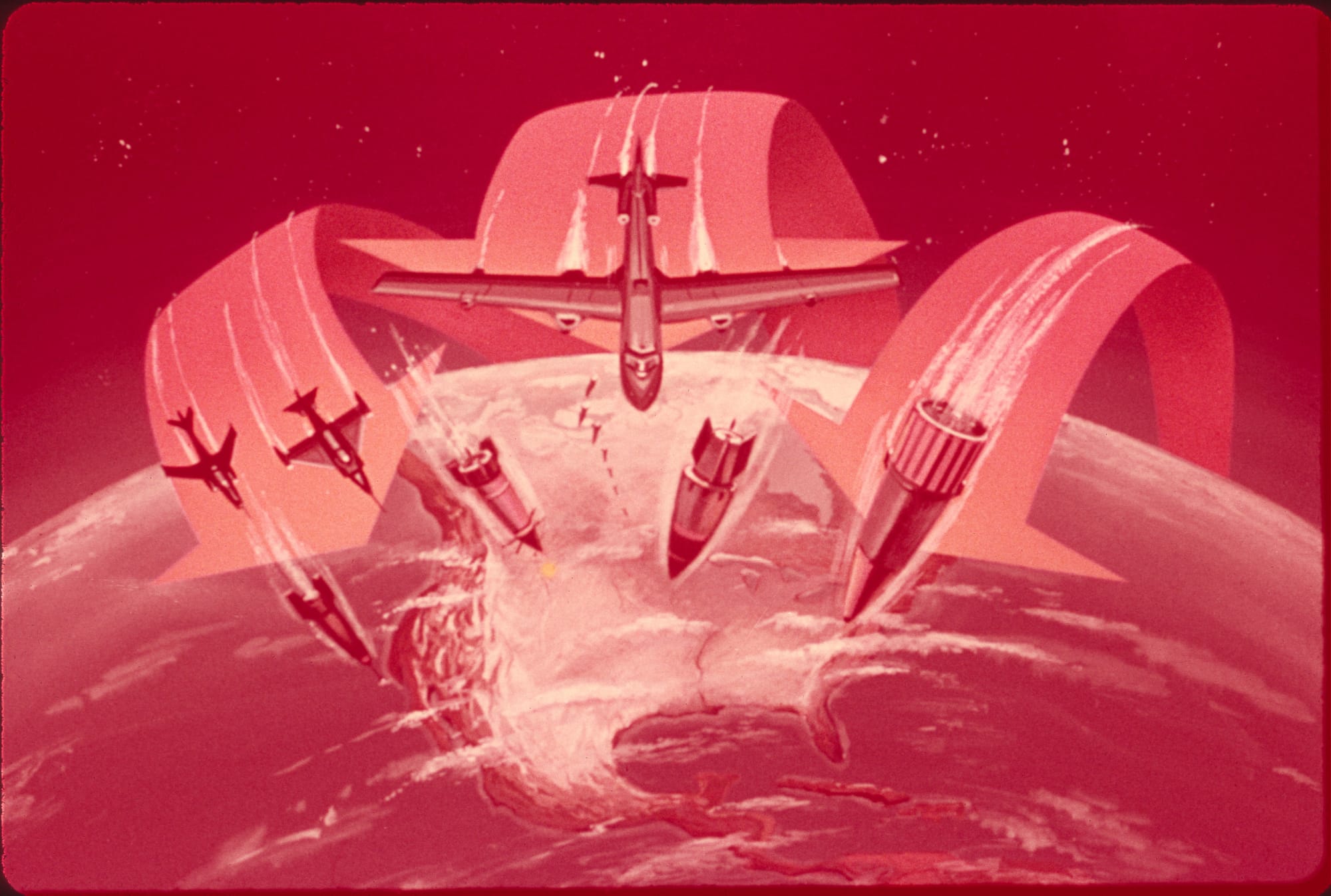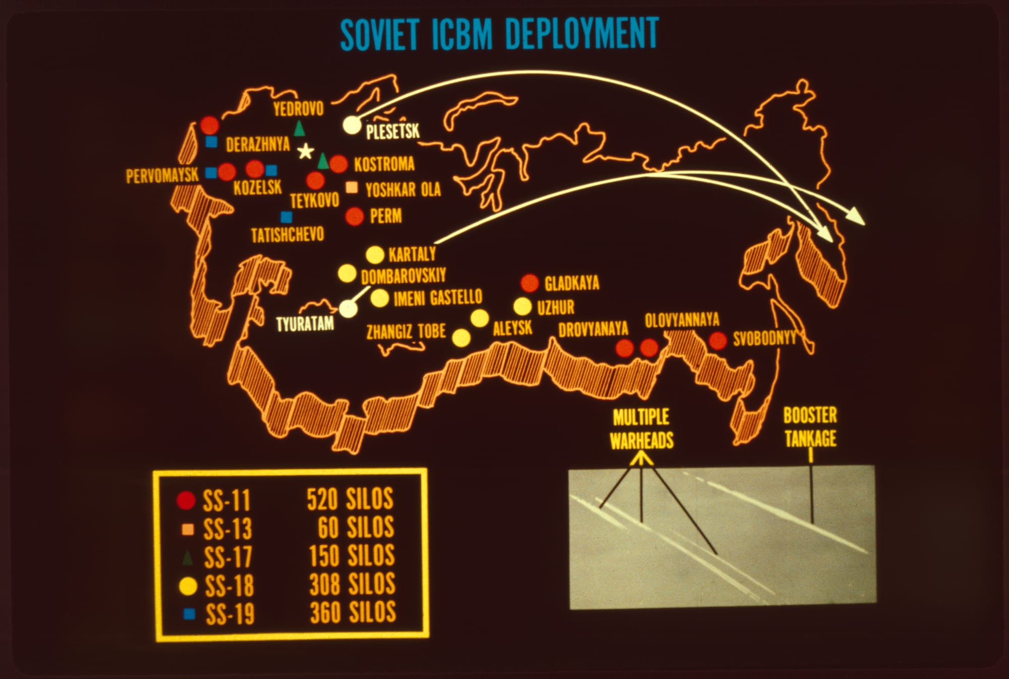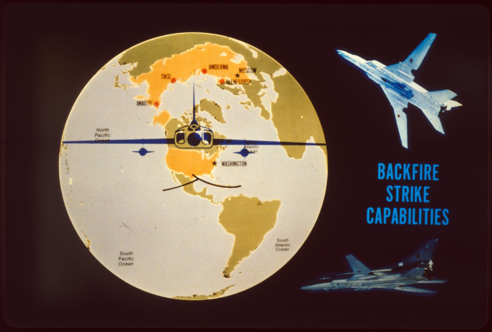 Most of the maps in these slides are illustrating the ways the US could have attacked the Soviet Union, or the ways they could have attacked us. Lotta “War Games“ vibes in these ones.