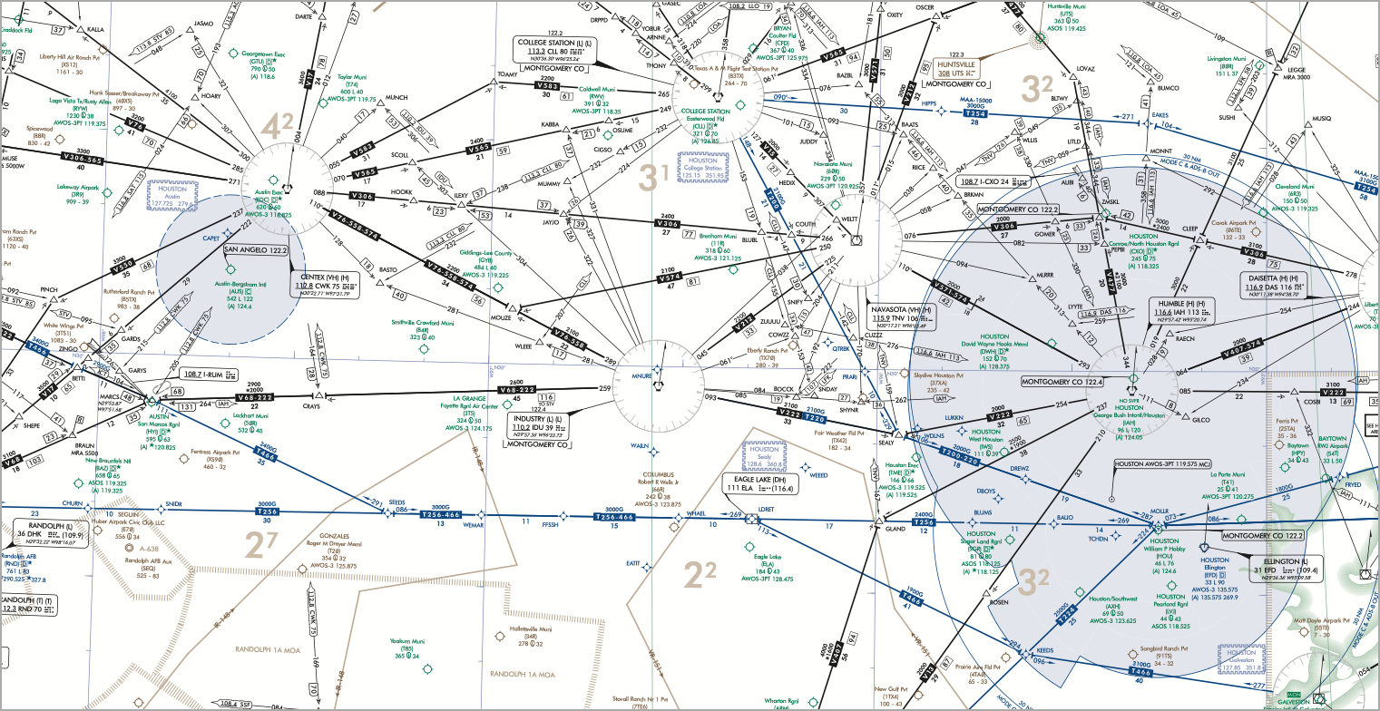 You may not realize it, but there are invisible highways in the skies. Planes don’t just point their noses at the spot they want to fly to (in most cases). That would create chaos in the skies that would be unmanageable. Instead, a series of different kinds of numbered point-to-point routes exist that planes enter and exit via known waypoints. These allow for predictable flight paths in the event of lost communication and can be found on the IFR and TPP maps.