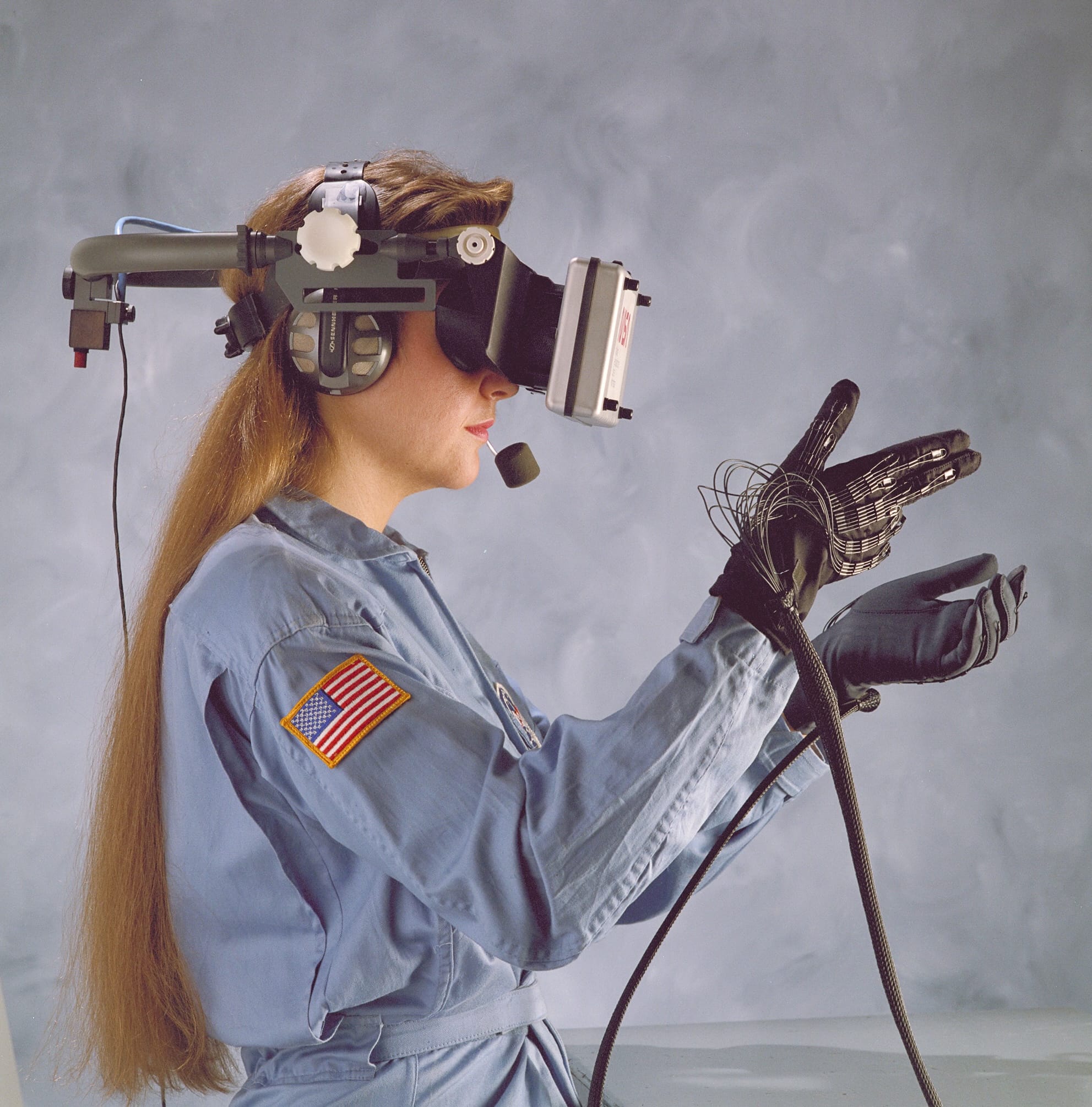 NASA Ames' Human-Machine Interaction Group did some early pioneering work with virtual reality with some wild looking hardware. Thinking about the current hype around AR/VR/XR, these NASA Ames researchers really saw the potential of this technology and were only limited by computing capability.