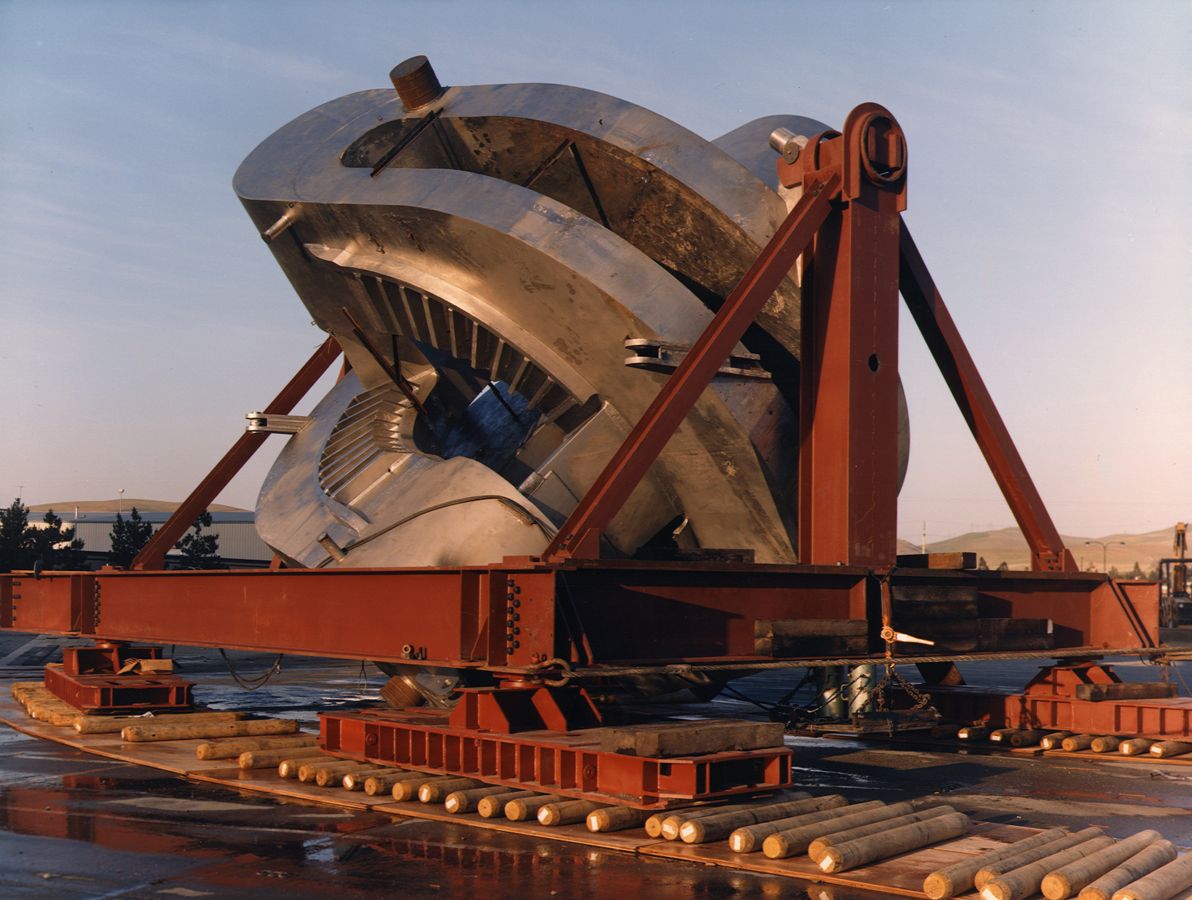 Photos of the 400-ton "yin-yang" magnet mirrors used in the MFTF-B. Source: Lawrence Livermore National Laboratory. Photo 1, Photo 2.