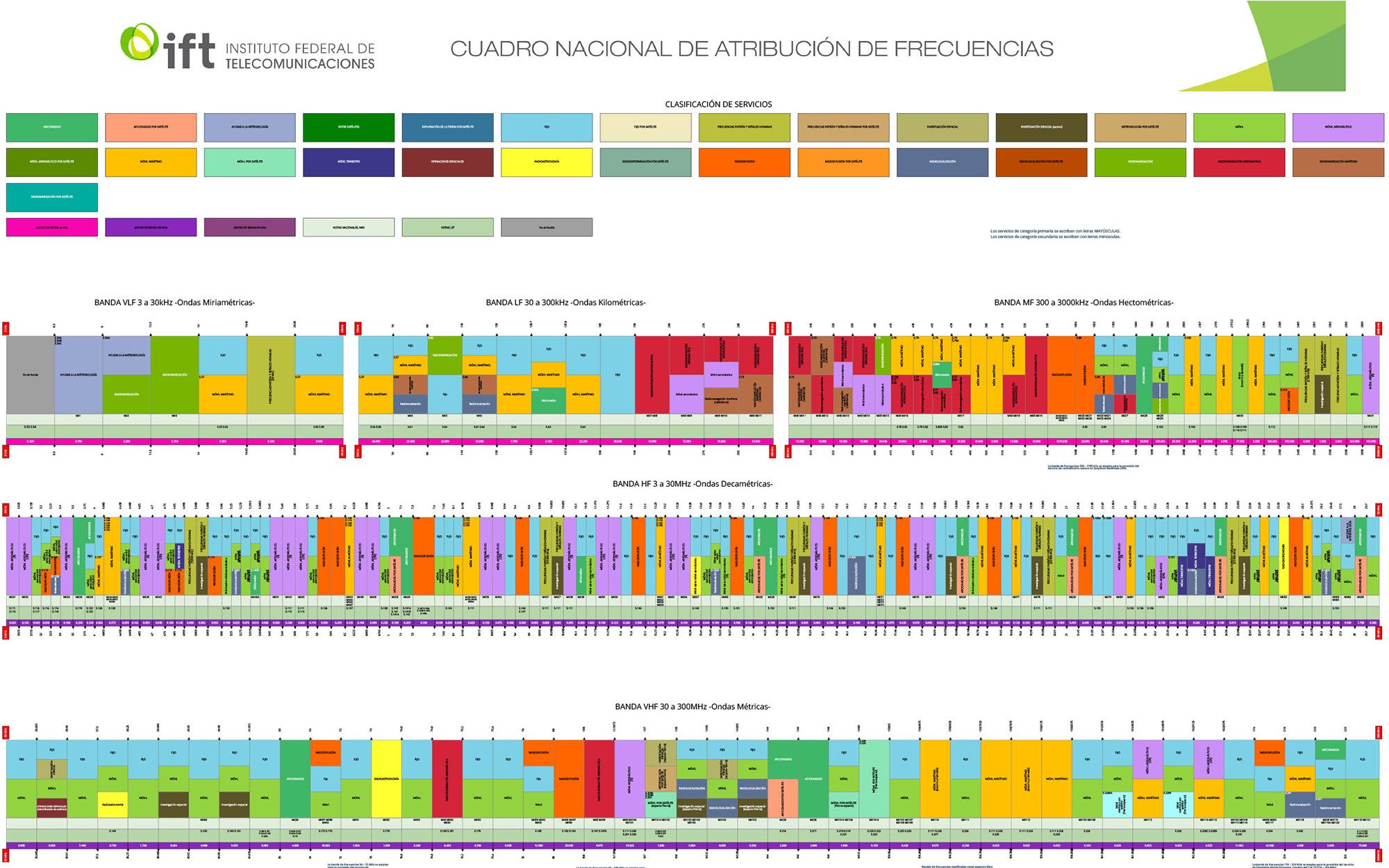 The specifics of what each slice is used for appears in a lengthy document known as the FCC Online Table of Frequency Allocations, which presents this breakdown in table format, which is precise but pretty boring to look at.